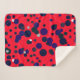 Beautiful And Stylish Abstract Art Various Shades of Blue Balls / Dots Painting Throw Blanket to add to your home / office / business décor collection. A cool present / gift idea for all who love custom design unique items, positive vibes, art, geometry, organic theme etc. Change the background colour (red) to suit your taste and style. Royal dark blue, purple.
