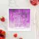 Mauve purple modern abstract art painted wedding napkins. Typographical text reads Eat, drink & celebrate the wedding of then add your own names and wedding date. Other matching items and colours available in this design. © Original watercolor art and design by Sarah Trett www.sarahtrett.com for www.mylittleedenweddings.com