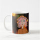 Colourful, bright, abstract design of a stylised face of a girl with stripy hair, ideal for home or in the workplace or office, a unique mug that stands out as yours.