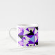 Happy Bright Colours Abstract Art Triangles Pyramids Pattern Word Coffee Espresso Mug / Cup to add to your home / office / business drinkware collection. A cool gift / present option for all who love custom design unique items, positive vibes, geometry, different forms and shapes, colour therapy, cheerful things in life, Purple, grey, pink, blue, black, white. Change the pink background colour to suit your needs and style.