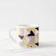 Happy Bright Colours Abstract Art Triangles Pyramids Pattern Word Coffee Espresso Mug / Cup to add to your home / office / business drinkware collection. A cool gift / present option for all who love custom design unique items, positive vibes, geometry, different forms and shapes, colour therapy, cheerful things in life, Yellow, grey, black, white. Change the pink background colour to suit your needs and style.