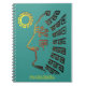 Machu Picchu Peru drawing and sun with swirling rays on teal Notebook. Ideal for people who love travelling! Text can be personalised.