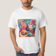 abstract artwork design that is vibrant, colourful, and fun. Incorporate a mix of an image bold geometric shapes, fluid lines, and dynamic patterns.