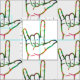 Add a Sign Language touch to your sewing project with this great Fabric featuring several Abstract ASL I Love You Hands. Skirts, Shirts, Pillows, Quilts, and more. From our Sign Language Fabric Collection.