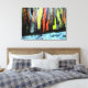 Vibrantly coloured trees beside a rapidly moving stream are shockingly highlighted by a sudden flash of lightning, in the original abstract landscape painting by Leslie Sigal Javorek. The rapidly moving stream disrupts reflection of the woods. Gallery-wrapped Stretched Canvas.