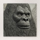 Ai art depicting a close up of Bigfoot or Sasquatch's face. Black and white degenerative lines.