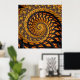 This product features an abstract geometric spiral fractal art in black and gold shades.