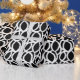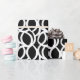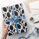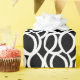 A modern abstract pattern with white curved lines crossing and joining each other on black background.