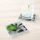 Abstract Black and White with Green Fractal Art Glass Coaster