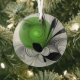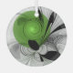 Abstract Black and White with Green Fractal Art Glass Tree Decoration