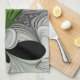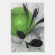 Abstract Black and White with Green Fractal Art Tea Towel