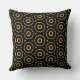 BOOM TOWN Accent Pillow. Black and gold abstract circle pattern.