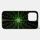 This abstract masculine iPhone case features a cool symmetrical design in neon green and black.