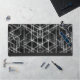 Keep your desk clean and organised with this stylish desk mat with black and white hexagonal shapes as futuristic abstract pattern for elegant and modern offices. The desk organiser shows where to put the keyboard, mouse, phone and coffee, of course.