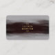 premium grey textured business card with a chic stylish inky brush stroke, first and last name in a luxurious gold in front, full name, career in black and contact info in gold thanks to contrast in back.