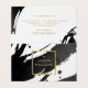 Inky, black paint brushstrokes create an abstract backdrop on this designer business card template. Your name or business name is displayed in a faux gold box on the front for a modern aesthetic. This folded business card gives you twice the room to add additional text, use for aftercare instructions, for promotional uses, and more. A fun, eye-catching card for creative professionals. Art and design © 1201AM Design Studio | www.1201am.com