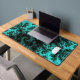 This desk mat features an abstract symmetrical fractal pattern in black and teal. Great for gaming room or home office.
