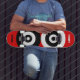 Abstract black & white circles on red skateboard