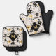 Abstract Black Yellow Grey Seamless Floral Pattern Oven Mitt & Pot Holder Set