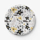 Abstract Black Yellow Grey Seamless Floral Pattern Paper Plate