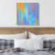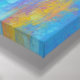 Roughly painted acrylic brush strokes in blue, turquoise, yellow and orange.