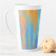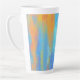 Roughly painted acrylic brush strokes in blue, turquoise, yellow and orange.