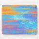 Roughly painted acrylic brush strokes in blue, turquoise, yellow and orange.