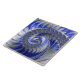 This ceramic tile features an abstract spiral fractal art in blue, grey, and white shades.