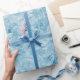 abstract blue feathers and snowflakes wrapping paper