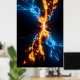 Transform your room into an epicenter of power with this breathtaking abstract energy clash poster. This vertical masterpiece captures the exact moment when intense, electric blue plasma collides with roaring, golden-orange fire against a pitch-black background. The sheer dynamic energy and glowing embers radiating from the center make this artwork an absolute showstopper. It is the ultimate statement piece for a gamer's den, a teenager's bedroom, or a modern man cave. The high-contrast aesthetic perfectly complements dark interior themes and RGB lighting setups. By choosing this piece, you are not just hanging a picture; you are making a bold declaration of style and passion for sci-fi and fantasy elements. Available as an Instant Download, you can get this high-resolution artwork immediately. Print it at home or at your local print shop in any size you need to perfectly fit your frame and space. Bring the ultimate battle of elements to your walls today!