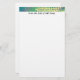 Painting of abstract diamond shapes of blue, green, and purple, on a yellow background is printed across the top of stationery, and has a placeholder to add your message.