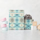 Abstract blue and grey fractal snowflakes geometric pattern wrapping paper. It features a pattern made of abstract shapes like snowflakes in light blue and grey.