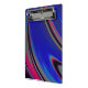 This abstract clipboard features a swirly fractal design in dark blue, magenta, black, and grey. Great for home offices, or school.