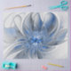 Unique fantasy flower decoupage with shades of blue and grey, abstract and elegant.