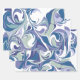 A fun abstract marbling swirls design in a colourful palette of soft minty green, periwinkle, blue, and purple.
