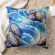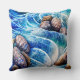 Abstract Blue Ocean Wave Marble Agate Gold Art Cushion