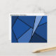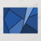 Inspired by stained glass, this stylish geometric design contains polygons in various shades of blue outlined in black. A light blue triangle slashes in from the upper right with an array of progressively darker blue quadrangles and other shapes spiralling around it from light to dark. Two dark blue shapes ground the left side of the original design.