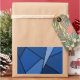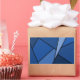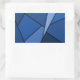 Inspired by stained glass, this stylish geometric design contains polygons in various shades of blue outlined in black. A light blue triangle slashes in from the upper right with an array of progressively darker blue quadrangles and other shapes spiralling around it from light to dark. Two dark blue shapes ground the left side of the original design.
