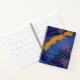 Abstract blue purple yellow painted background with a white astrological wheel.  Choose from sketchbook, bullet journal, checklist, graph paper, recipe book, or lines in various widths and colours.  Also choose a spine colour to further customise your notebook look.