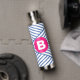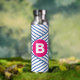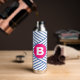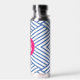 Abstract Blue Stripey Pattern Pink Monogram Water Bottle