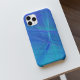 This iPhone case features an abstract fractal art on a blue to turquoise gradient background.