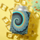 Abstract Blue Turquoise Orange Fractal Art Spiral Can Cooler