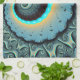 Abstract Blue Turquoise Orange Fractal Art Spiral Tea Towel