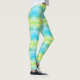 These trendy, playful leggings with an abstract colourful geometric pattern of large circles from blue to yellow and green, are resembling soap bubbles or bubble gum.