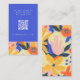 Retro Artsy Abstract Botanical Wedding QR Code RSVP Card in Blue, Orange, Pink, and Yellow