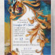 Abstract bronze, copper, arrangement of leaves and flowers in gold, copper, mixed blues, and yellows on an oil painting background for customised wedding invitations.