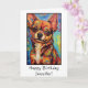 Abstract Brown Chihuahua Dog Happy Birthday Name Card