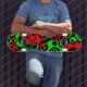 An exciting and fun abstract design made up of circular bubble like shapes in vibrant contrasting red and green with black. Made from a vector original and output at 300 dpi to ensure the best print quality.