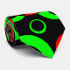 An exciting, fun, dynamic, bold modern abstract design made up of circular bubble like shapes in vibrant contrasting red and green with black.