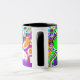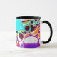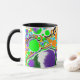 Blue, lime green, purple, orange colourful abstract fluid digital art coffee mug.